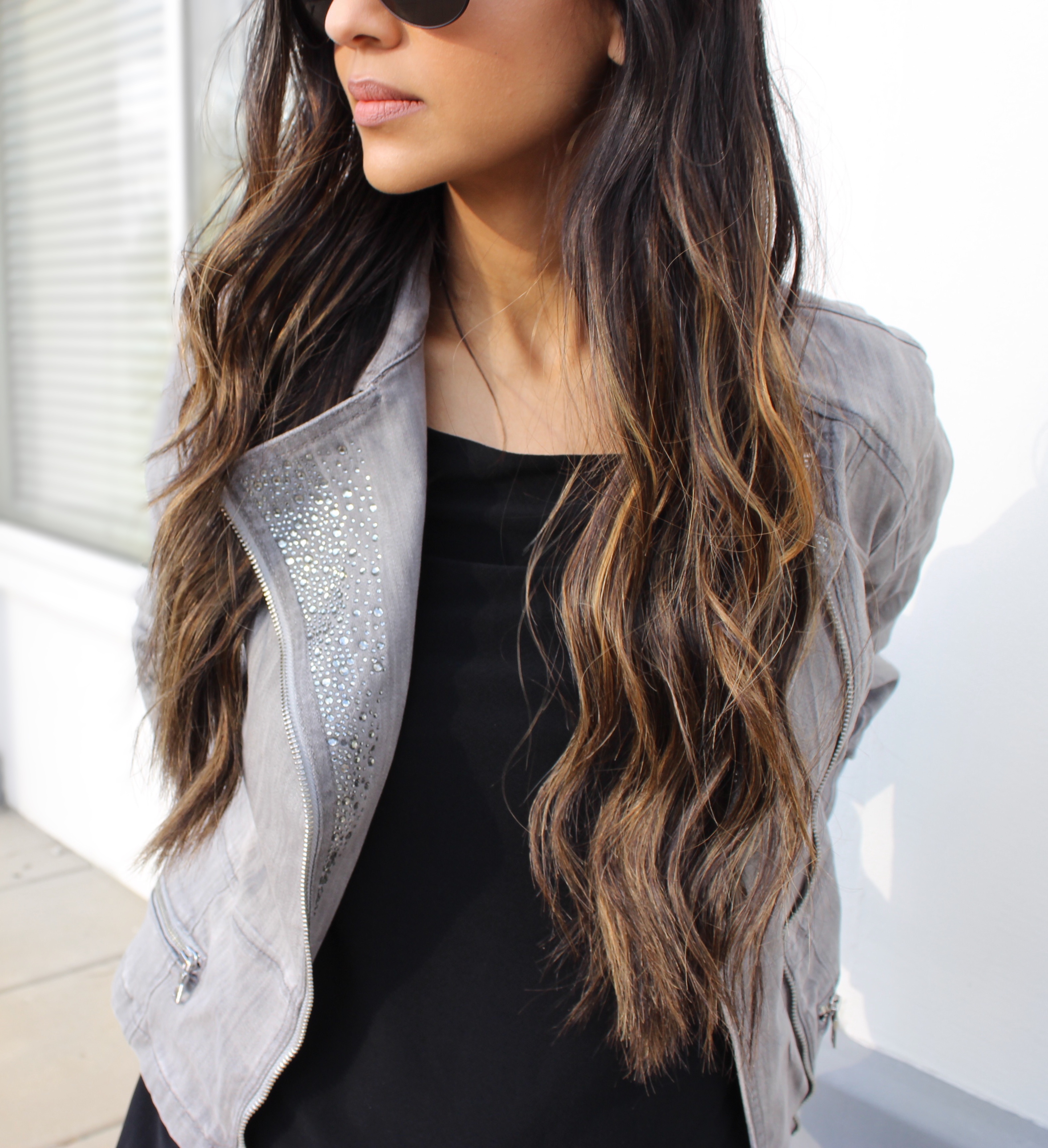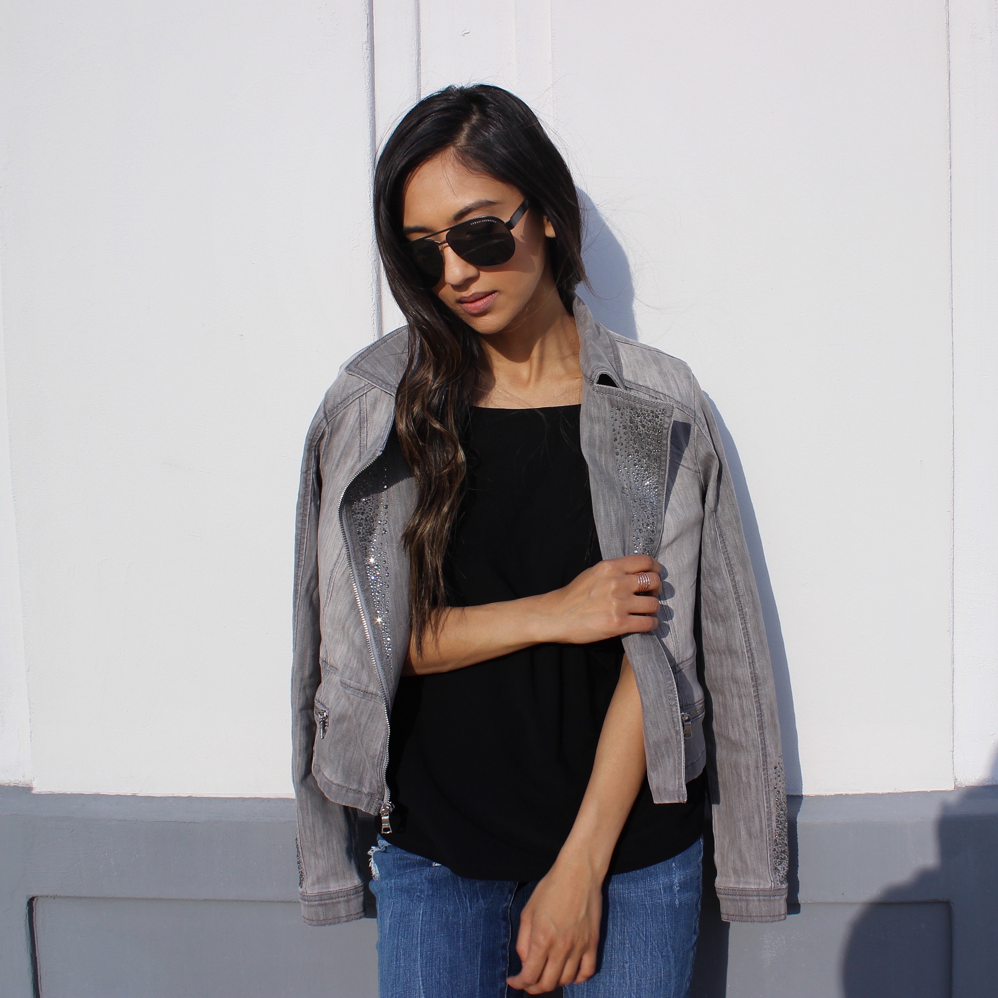 Look numero tres, some classic boyfriend patchwork jeans with classic black pumps. My favorite part about this look is the Rhinestone embossed grey denim jacket. I just love this item so much. Everything pairs perfectly with this jacket: shorts, skirts, dresses, jeans, you name it. If you’ve already got enough denim jackets in your closet, it is time to switch it up for something different. I tend to get cold no matter where I am or what time of year, and I ALWAYS need to take a light jacket with me just in case. This one is perfect for just that. I’ve told you guys about my current obsession with slides, haven’t I? How cute are these dragonfly detailed slides? On my last trip to California, I wore them for majority of the trip and they were so easy to walk in!