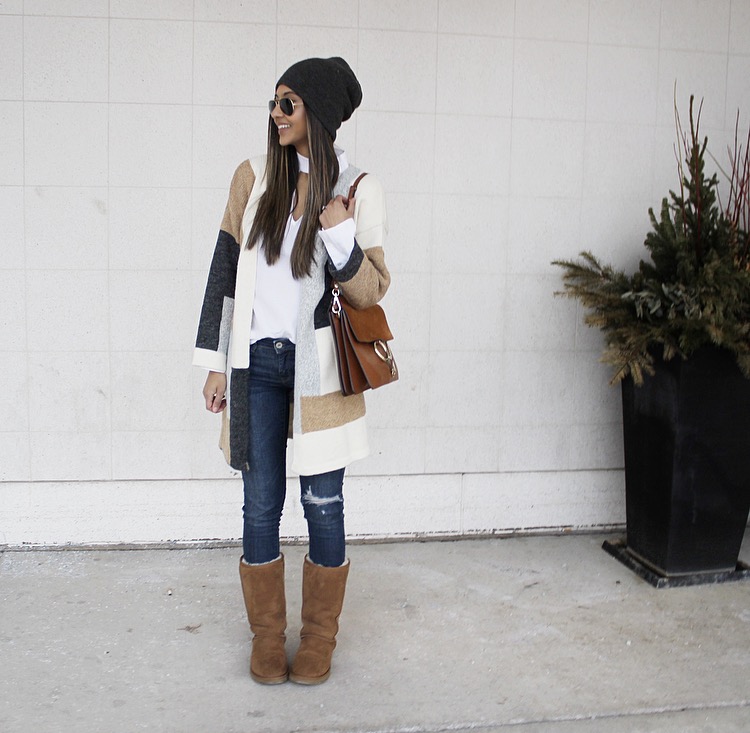 I Hope everyone is having a great week so Farh! I think it might almost be time to put away our parkas for the season. Swap out your jackets and coats for a great cardigan, that’ll keep you warm and trendy! Sometimes you want to wear a dress and pumps, and sometimes you just want to wear jeans and a cardigan. It’s simple to layer up, whether you decide to wear it with just a tee or over a sweater or another lighter cardigan. The colors are my favorite though, because the shades of brown and grey work well with all neutral colors! You’ll love this unusually chic addition to your wardrobe. Oh, did I mention it’s only $32?! What a major steal! Snag it right here >> Shein Color Block Drop Shoulder Open Front Cardigan