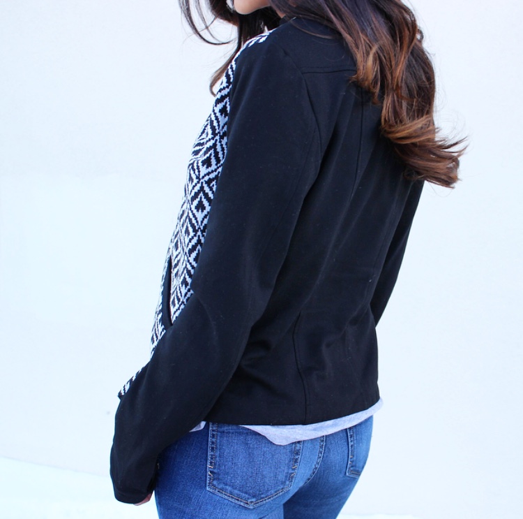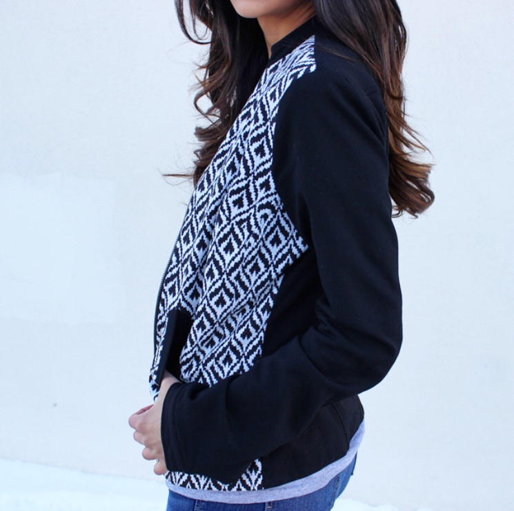 It’s been so long since I’ve shared a post. Recently I took a vacation to Toronto and have been busy with work, but now I’m back in action! This post features an eShakthi Geo Print Front Ponte Bomber Jacket. It is usually hard to find clothing that fits well. Primarily I know my size when I order online and I usually get it right, but that doesn’t mean I don’t have those instances where I wish my pants were a tad bit longer or my sleeves  a little shorter. I have some friends that have such a hard time finding the perfect fit when it comes to clothing. Then I was introduced to eShakti. The nice thing is that it is an online boutique that carries sizes ranging from 0-36. Not only does it carry a wide selection, but you get to customize the length of all the garment pieces as well. Basically you have the option to make any item fully fitted just the way you like. In my opinion, that’s pretty awesome.