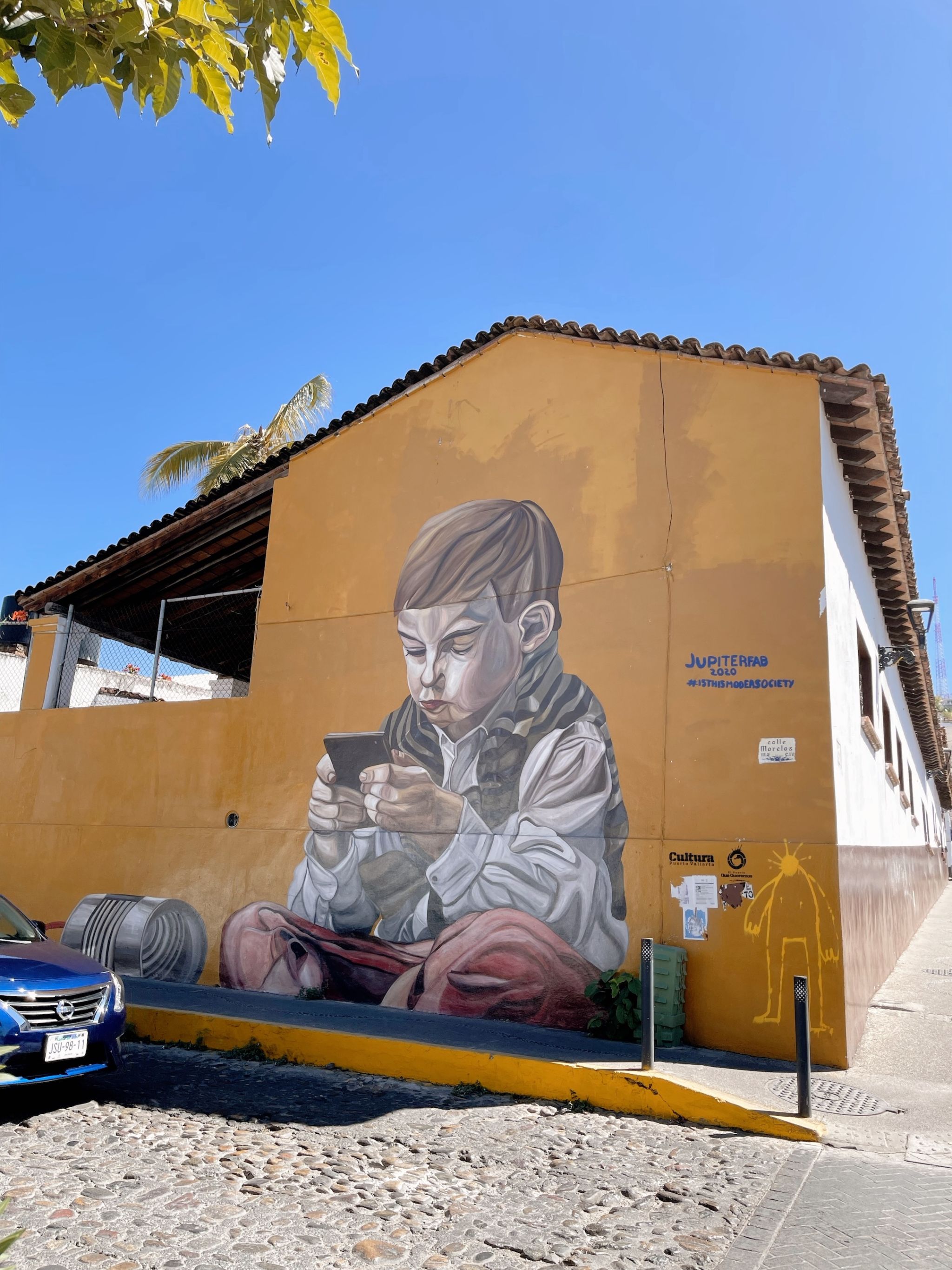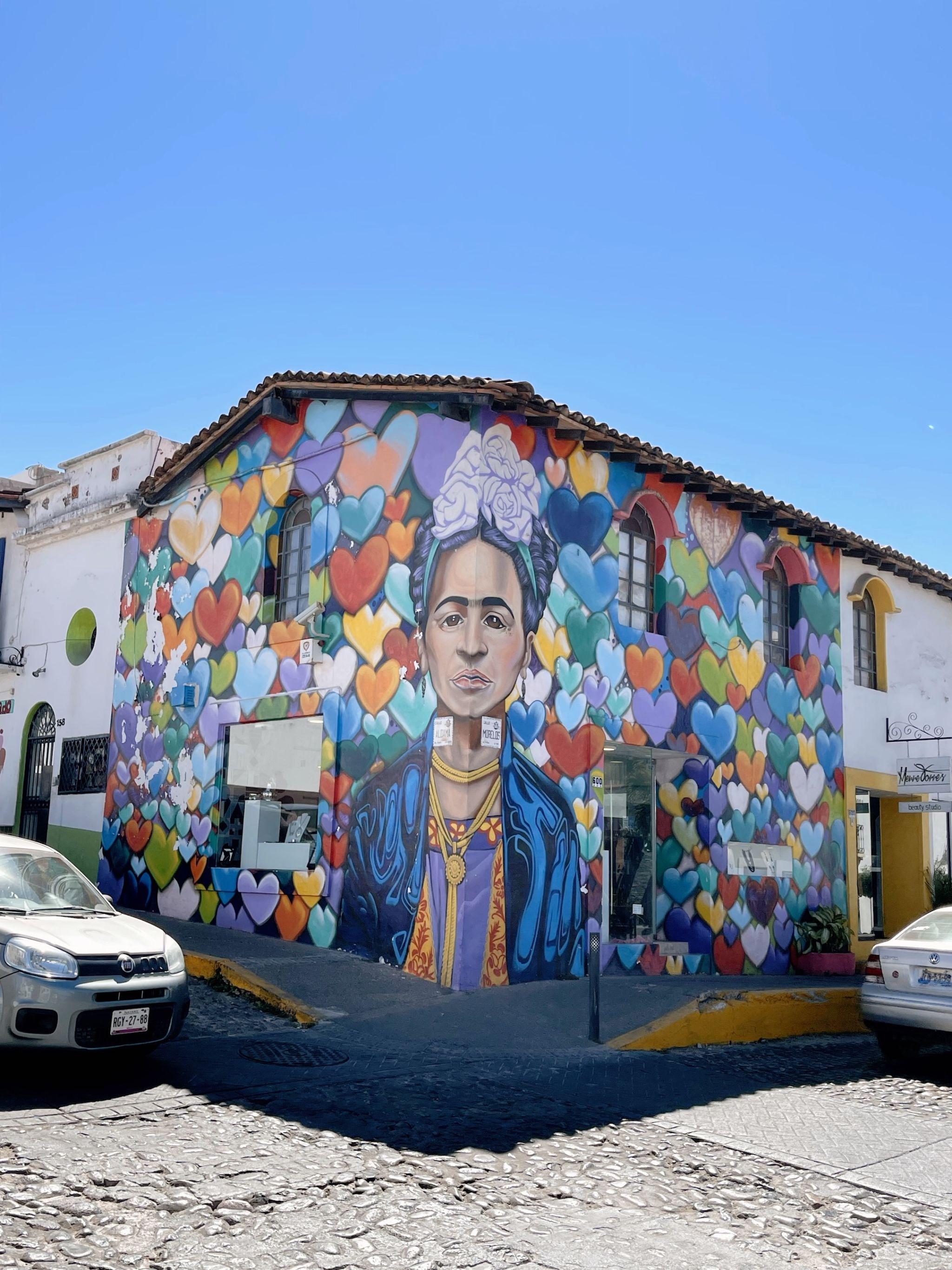 Every morning we had a buffet breakfast and my go to order was the huevos rancheros and the chai latte at the Deli Los Mangos was unbeatable. The next day we took a private city tour of Puerto Vallarta and wow, this city is so full of culture, music, food, and amazing views! We walked around and enjoyed the scenic beaches, boardwalk, and even went into town where we saw how the locals live. We visited a cathedral, fresh fruit /vegetable stands and took in the authentic Puerto Vallarta experience through the Sierra Madre Mountains! As we drove around we saw so many beautiful murals and even met an artist who was creating these angel wings below, and I had to stop and snap a photo! I’ve made a list of all of the cool photo opps below: