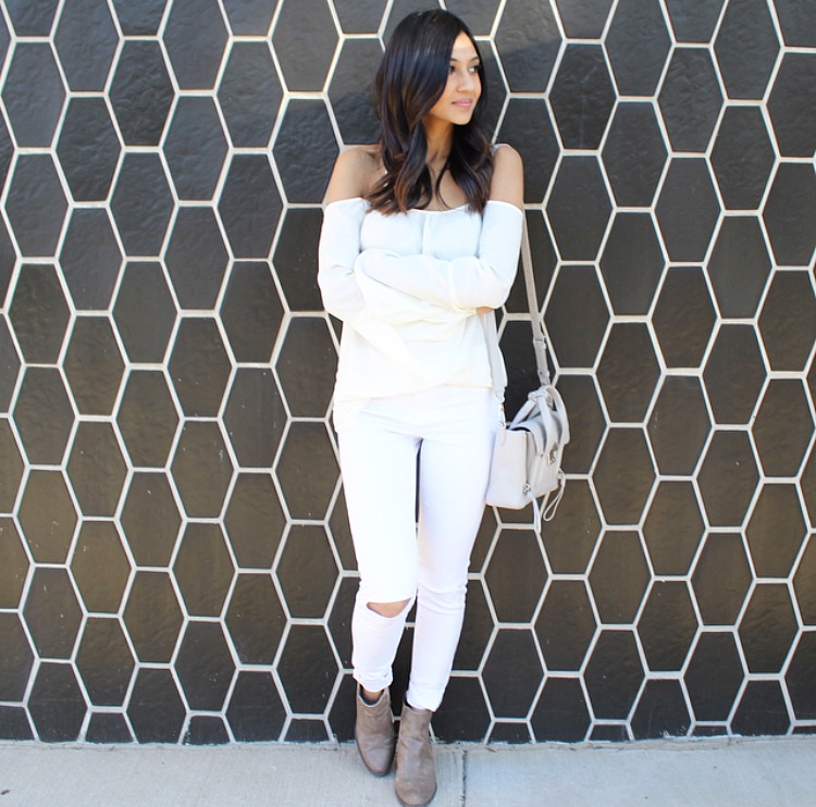 I wanted to share one of the biggest, and possibly most favorite trend this season: off-the-shoulder tops! The bare shoulders expose the right amount of skin for a fresh Summery feel. Tobi.com has a variety of off-the-shoulder tops perfect for the beach and/or a night out. I am wearing the Crossing X’s Top in Ivory in a size XS. It comes in almost every color and can be paired with almost anything; a pair of jeans, high waist trousers, denim shorts, or even a skirt to name a few. Find the direct links below, and I hope you love this trend as much as I do!