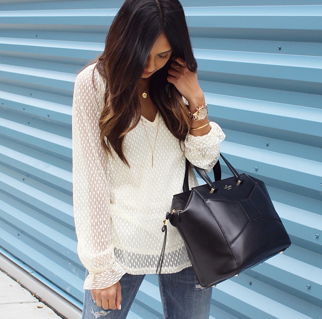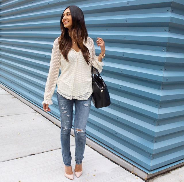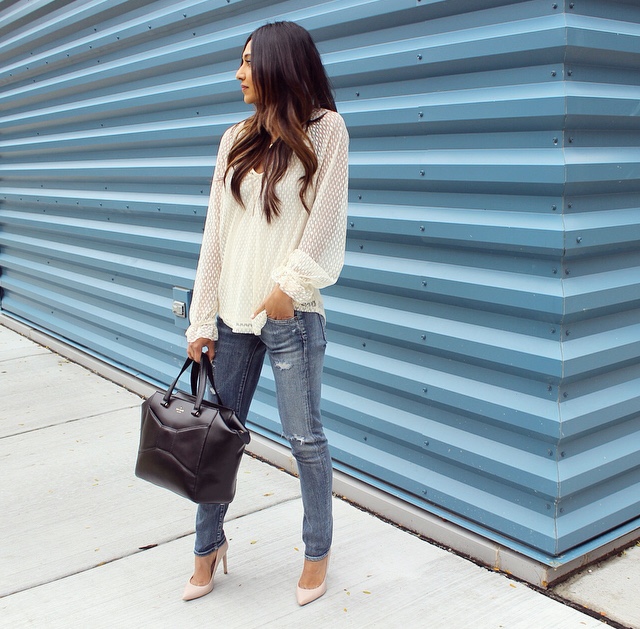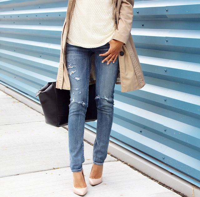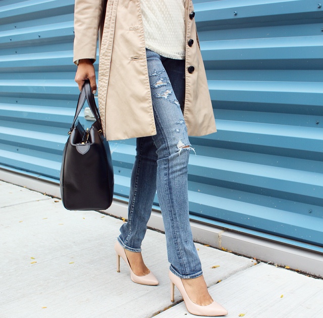 Honestly, no one can have too many pairs of jeans. They are the one item in your closet that you can wear everyday! I am wearing Citizens of Humanity Racer Skinny Jeans from Piperlime and if you like this pair, you should see their extensive collection of denim. YES, it is to die for. My blouse pictured is Piperlime‘s Ella Moss Dot Lace Top. Its’ sheer and light fabric makes for a comfortable wear; and it also comes in black! I paired this duo up with a trench coat, because they don’t call Chicago the Windy City for no reason. To top it off, my nude pumps and a black handbag makes this a classic outfit for any day. Find the direct links to Piperlime‘s pieces below and don’t forget to check out their other amazing must-haves!