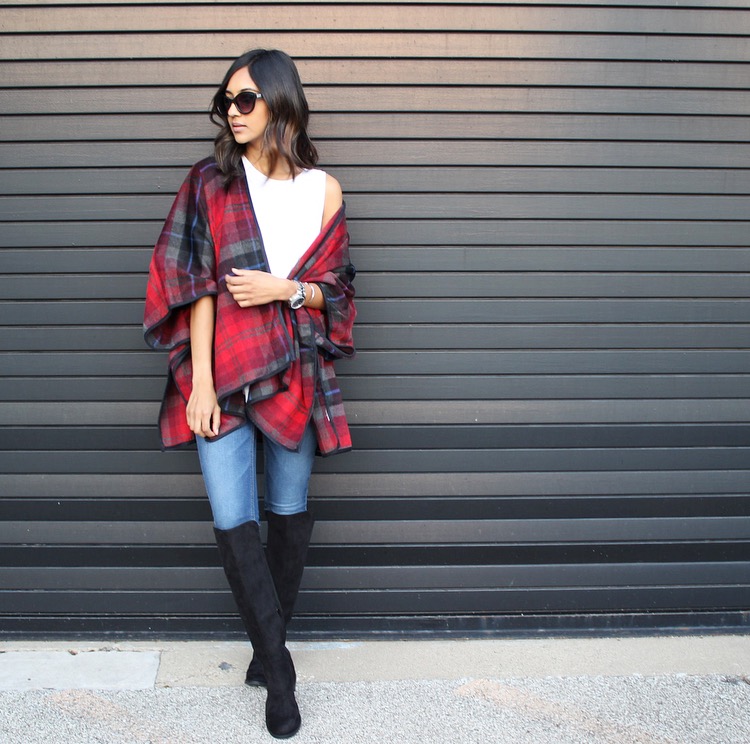 It is officially poncho season and I couldn’t be happier! A poncho is such a great piece to make any outfit Farh from ordinary 😉 . It’ll keep you warm and instantly make your outfit trendier. I decided to pair this poncho with a timeless pair of jeans, and some black knee high boots (also available at Old Navy) for a more casual feel. However, I can already think of a handful of outfits to pair this great poncho with: a great LBD for a night out, or combined with a skirt and a knit sweater for a dinner date. Old Navy has got an array of styles and colors available, and I chose the plaid poncho because nothing screams Fall fashion like a great plaid piece. So grab a poncho while they last. Shop my head to toe Old Navy look below!