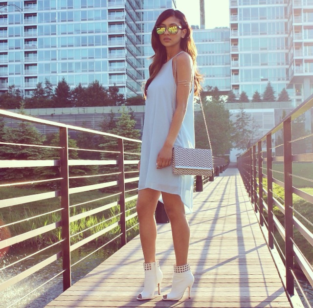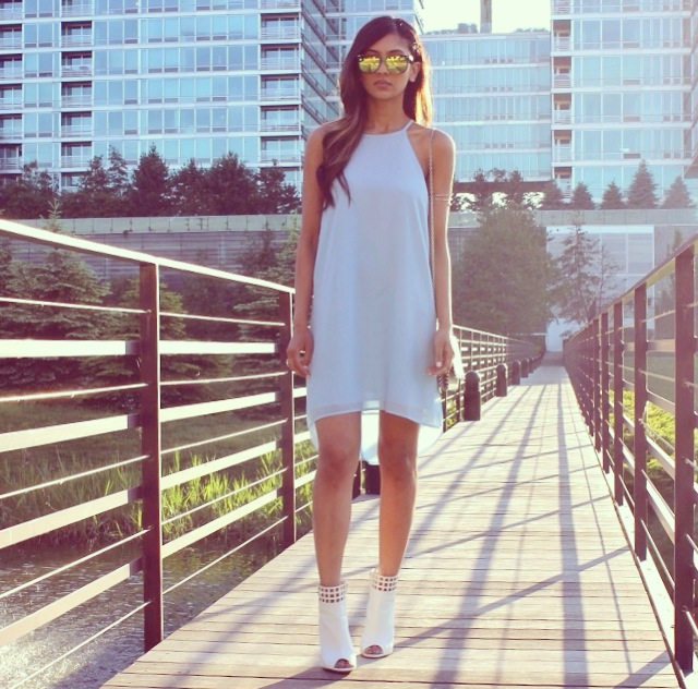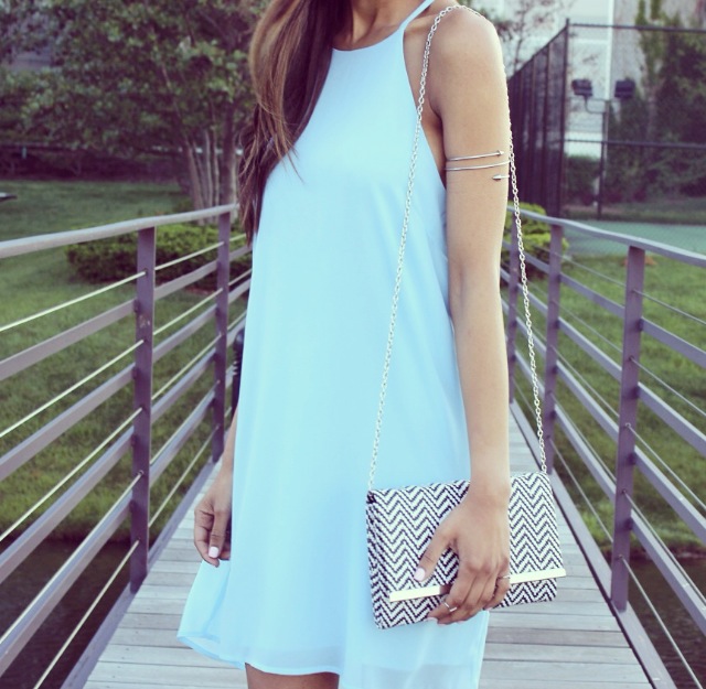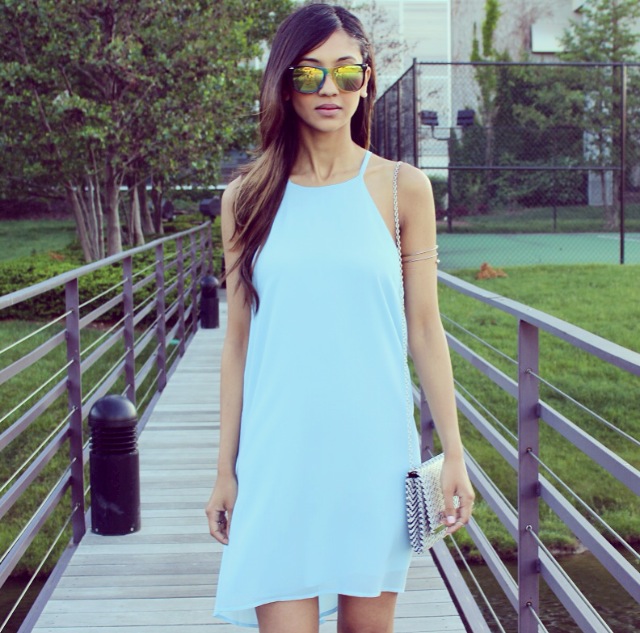 I am so excited to be teaming up with the Style Club! I fell in love with everything on their website! I am wearing their date night sheer dress in powder blue. The pastel color is so fitting with the warm weather, and I absolutely love the high neckline. It gives attention to my collar bones and the loose fit is so delicate and comfortable. The dress is so pretty, and I decided to style it with some white booties and a houndstooth clutch. Hope you like this look! Don’t forget to check out www.thestyleclub.com for more chic and affordable pieces that are perfect for summer!