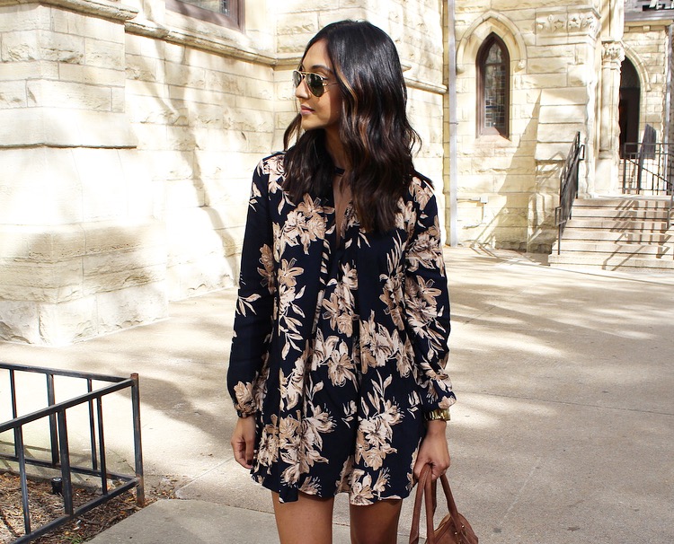 Whether they are short or long, printed dresses are such a huge trend right now. Obviously, I had to get my hands on one. This Fall floral printed dress from Akira is such a must-have, and let me tell you why. Pair it with nude heels, flats, or some taupe over-the-knee boots, and you’re set for any occasion. It’s flowy fit is so comfy and it has pockets! Trust me when I say this dress is bound to be a head turner. Both my sisters are already fighting over who is going to borrow it first!