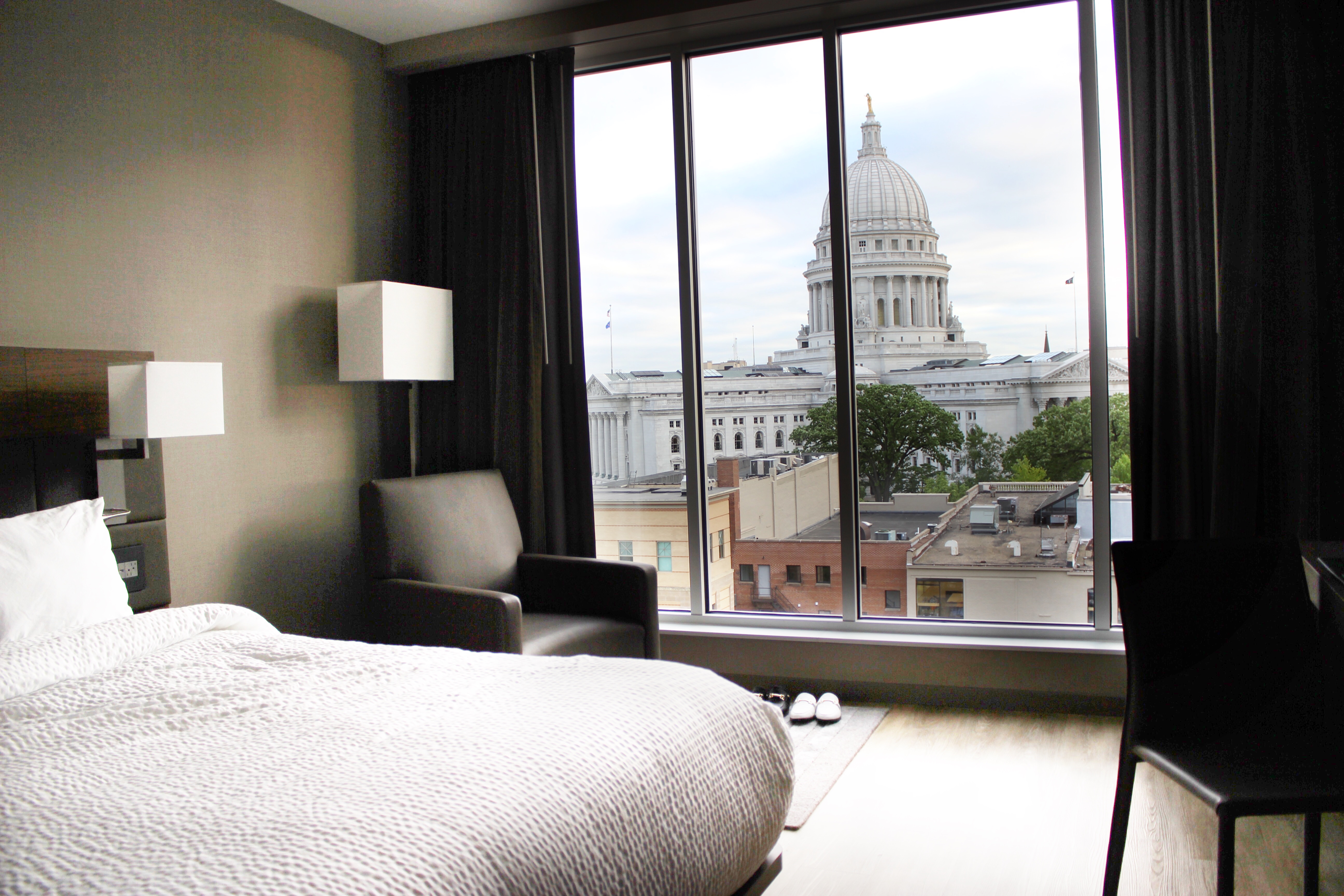 A couple of weeks ago, Malick and I took a road trip down to Madison, Wisconsin for the grand opening of the AC Hotel in downtown! I must say this was my first time in Madison, but definitely won’t be the last. The AC Hotel is downtown Madison’s newest attraction, and it is THE hotel to stay at in the area. With the most amazing view of the State Capital and in the heart of the city, the new and stylish AC Hotel is your hot spot.