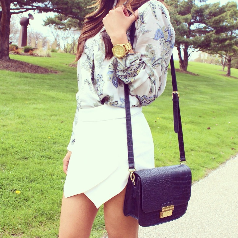Lovely outfit! The skort is really cute and I love the bag xx