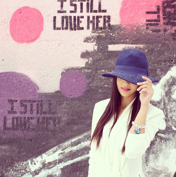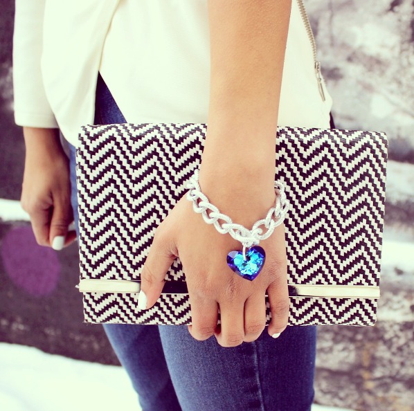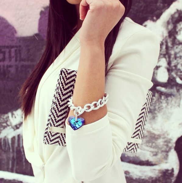 This was such a fun shoot, even though it was freezing cold out! I absolutely adore this “My Love” bracelet from Sparkle and Sophistication! It works perfect for Valentine’s day just around the corner! For this look, I wanted my accessories to do most of the talking, so I kept the outfit simple: a asymmetrical wrap white blazer from Armani Exchange, a pair of classic, dark denim from Zara and some comfy over the knee boots from Aldo. I want to thank Sparkle and Sophistication for this beautiful bracelet! It adds a bit of sparkle to a sophisticated look!