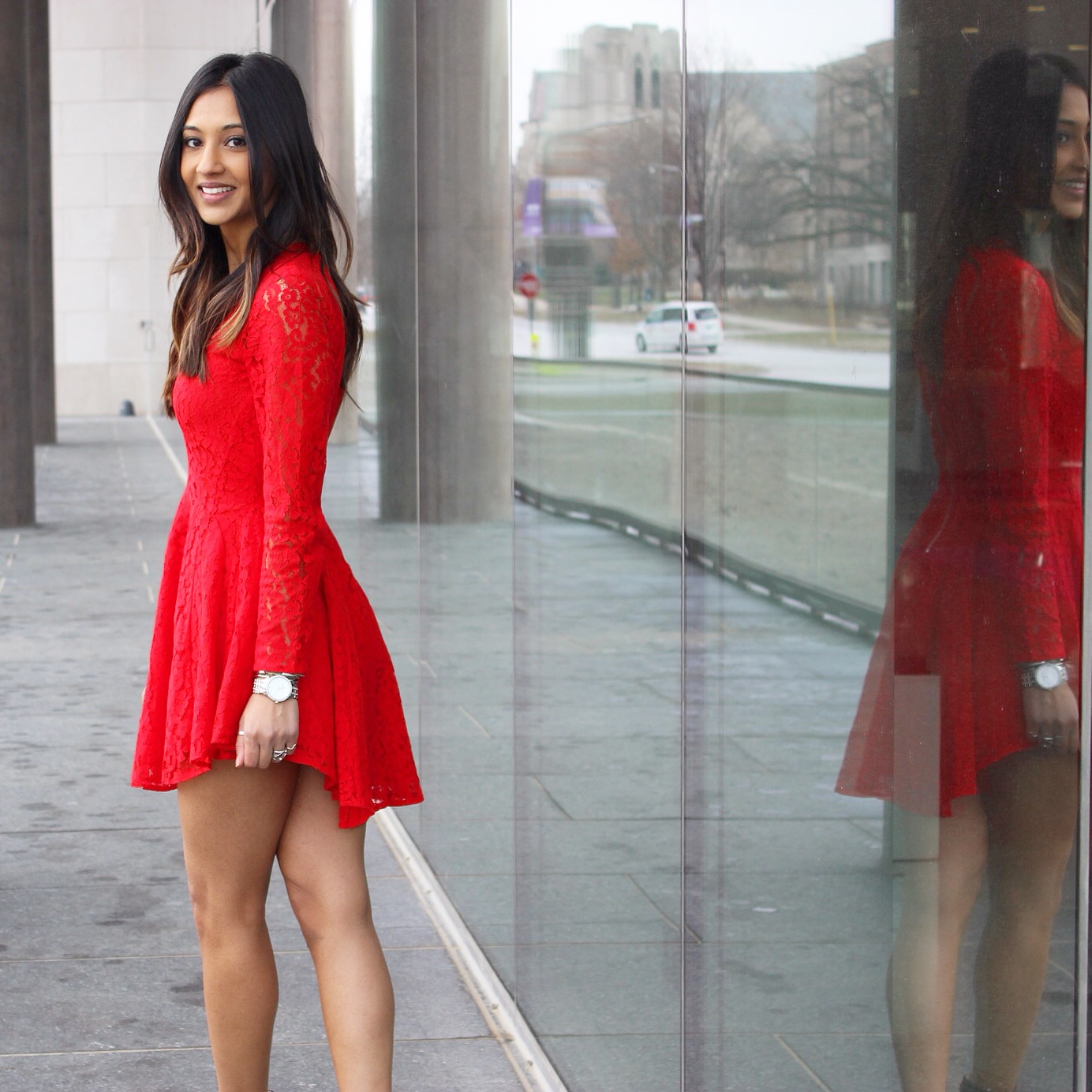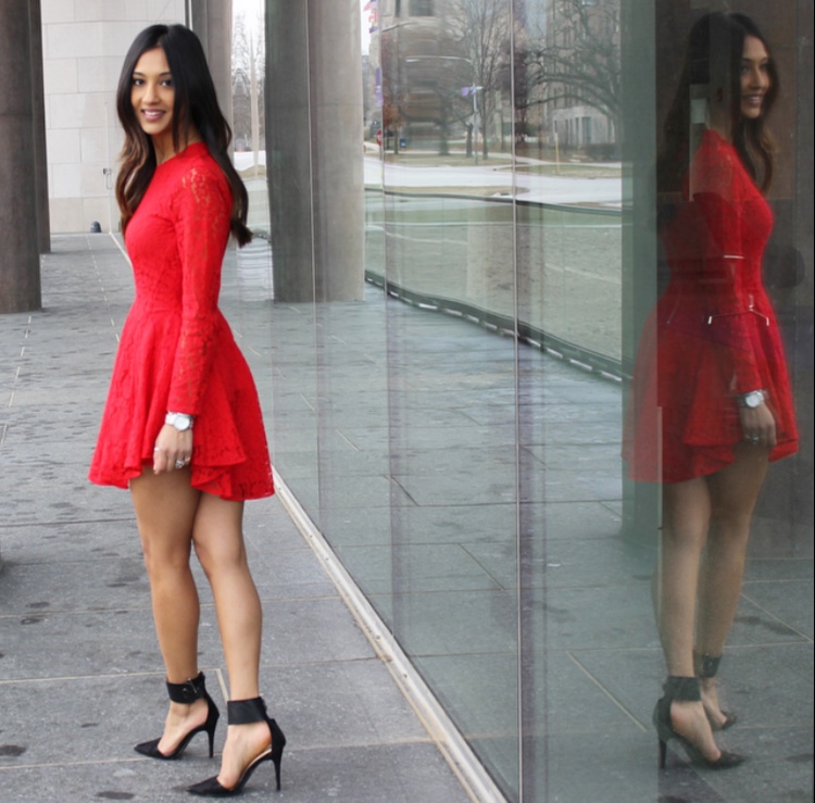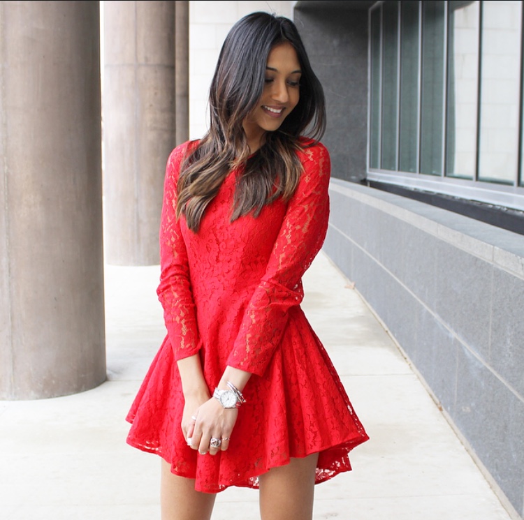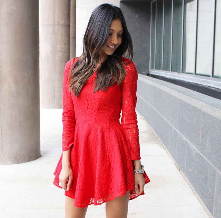 Now for the more daring look that will be sure to turn heads. This red hot and lace number is from H&M! I love this dress and when I spotted it, I knew it was the perfect one for the upcoming holiday party! It’s bright color is so refreshing and fitting for the holiday season, that it was also featured in Elle Magazine! You can wear this to a family party by adding some black stockings, but for a night out, you can wear it as is. It’s fun and flirty and fits my personality just right. Red is such a rich color and for this time of year, you can’t go wrong. I hope this helps you all find the perfect holiday outfit!