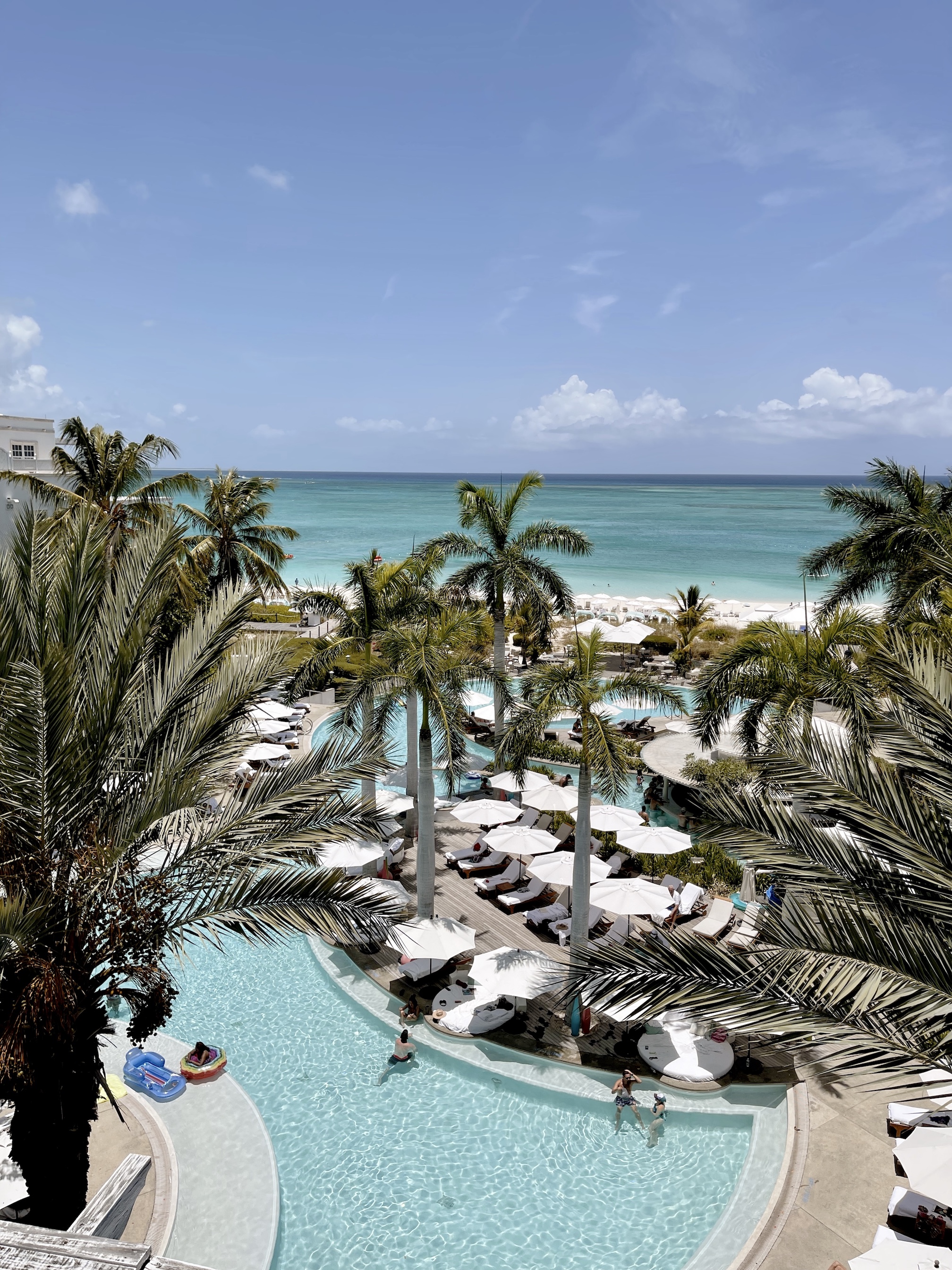 While there, I had the pleasure of visiting the sister property, The Palms, and it is so gorgeous! Highly recommend this property as well, especially if you are planning on spending a lot of time on the beach, as it has direct access to Grace Bay Beach! Grace Bay Beach is one of the most beautiful beaches I have ever seen! This property has one large wrap-around pool that is very spacious, and the nice thing about the properties is that there is a shuttle offered that can take you back and forth.