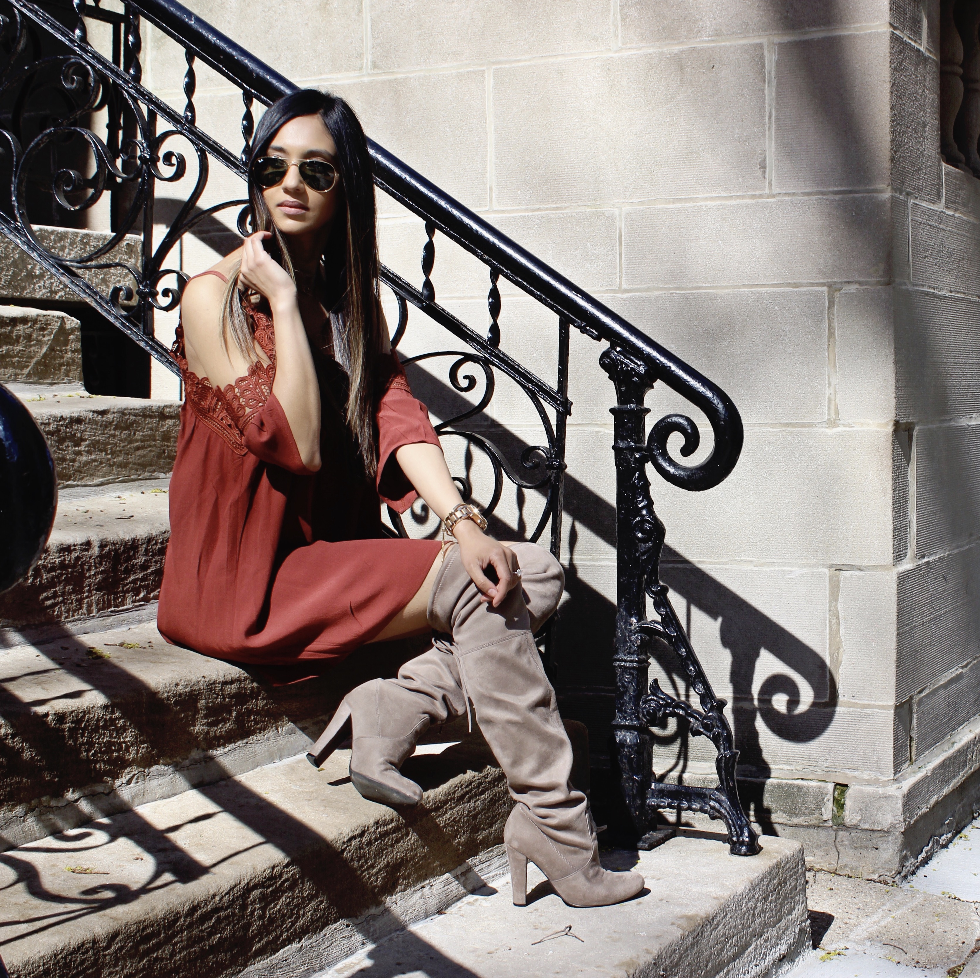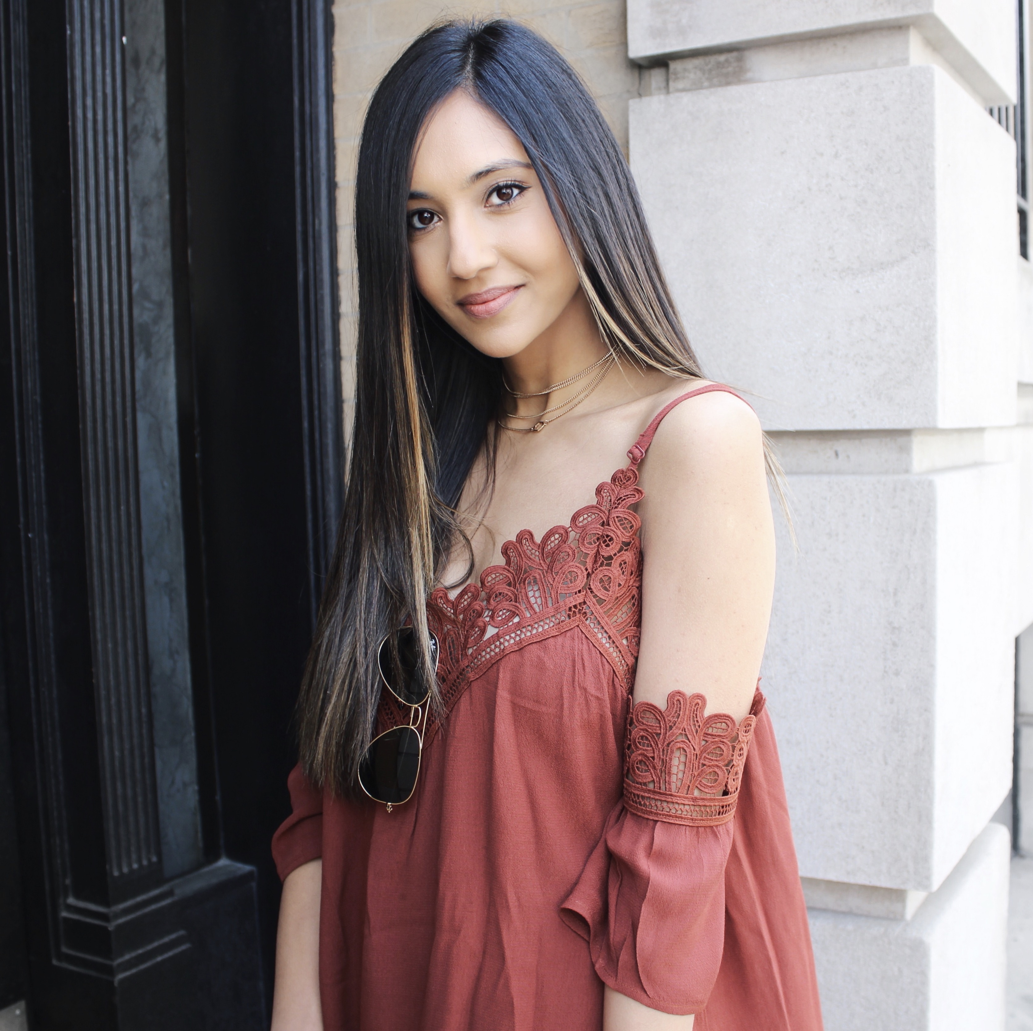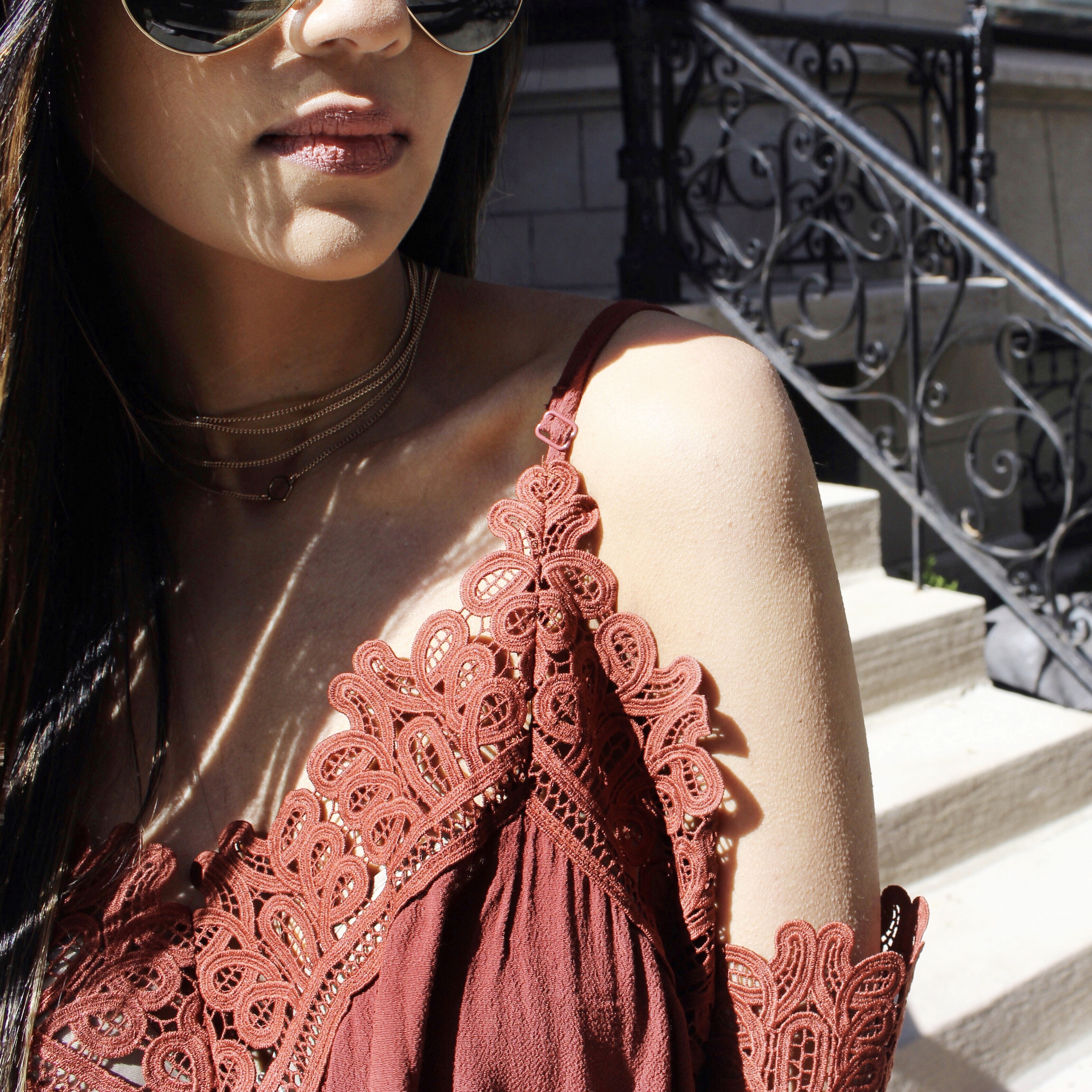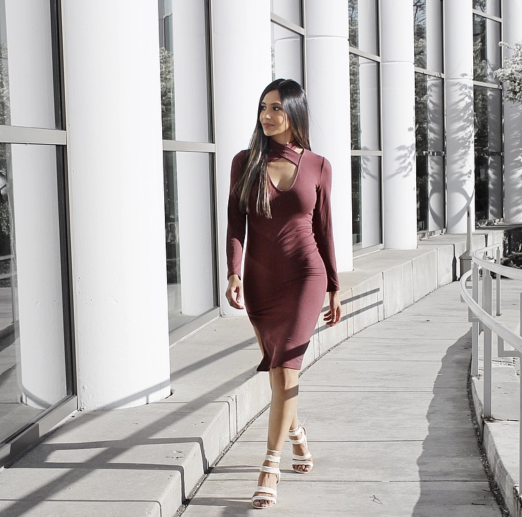 For a daytime occasion, I would go for a more flowy dress with either a print or a fun pop of color. For the evening, I would gear more towards a midi-length option. Pictured above I am wearing the Tobi Everlasting Lace Shift Dress, which is a great day time and evening option. The Tobi Michelle Low Back Shift Dress is ideal for Spring and Summer because of its floral print, and Tobi Everlasting Lace Shift Dress offers pretty and delicate detailing. The wine colored Tobi Natalie Cross Front Ribbed Midi Dress would be perfect for an evening affair. The front and back cut out and the slit give it a little bit of sexiness without showing too much skin.