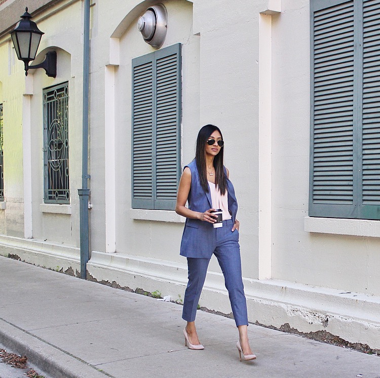 I think a lot of times we get caught up in our play outfits that our work wardrobe is forgotten. The best thing about Banana Republic is that they offer petite and tall sizes; sometimes it’s hard to find a good pair pants for work that fit right. The Avery-fit and cropped pant are flattering when worn with heels or flats. I am wearing the pants in 00 petite and the vest in an XS. This set is now on SALE with an additional 50% at checkout! Some of my other favorites are the windowpane pieces! I am linking the look below along with other great work options!